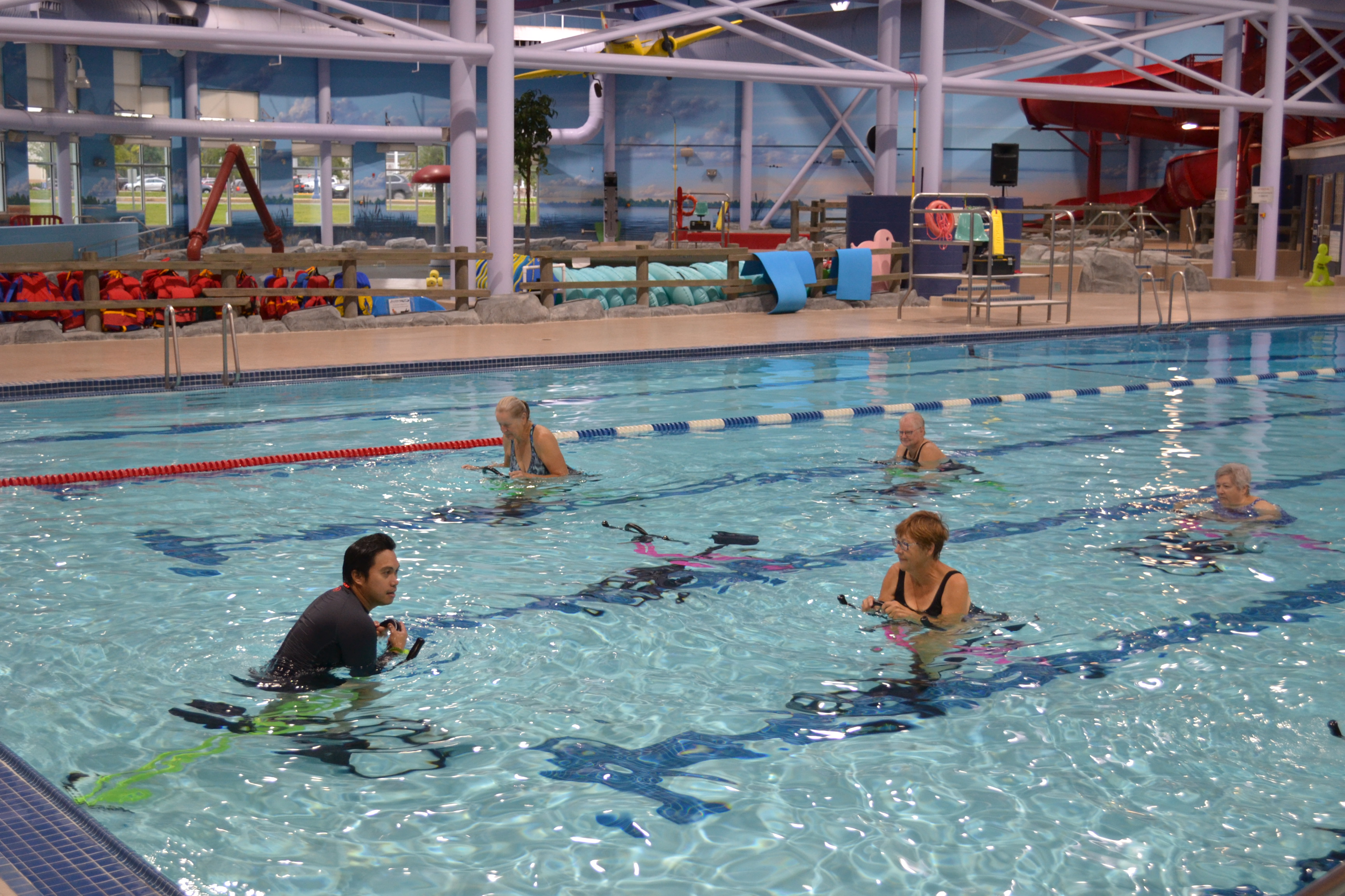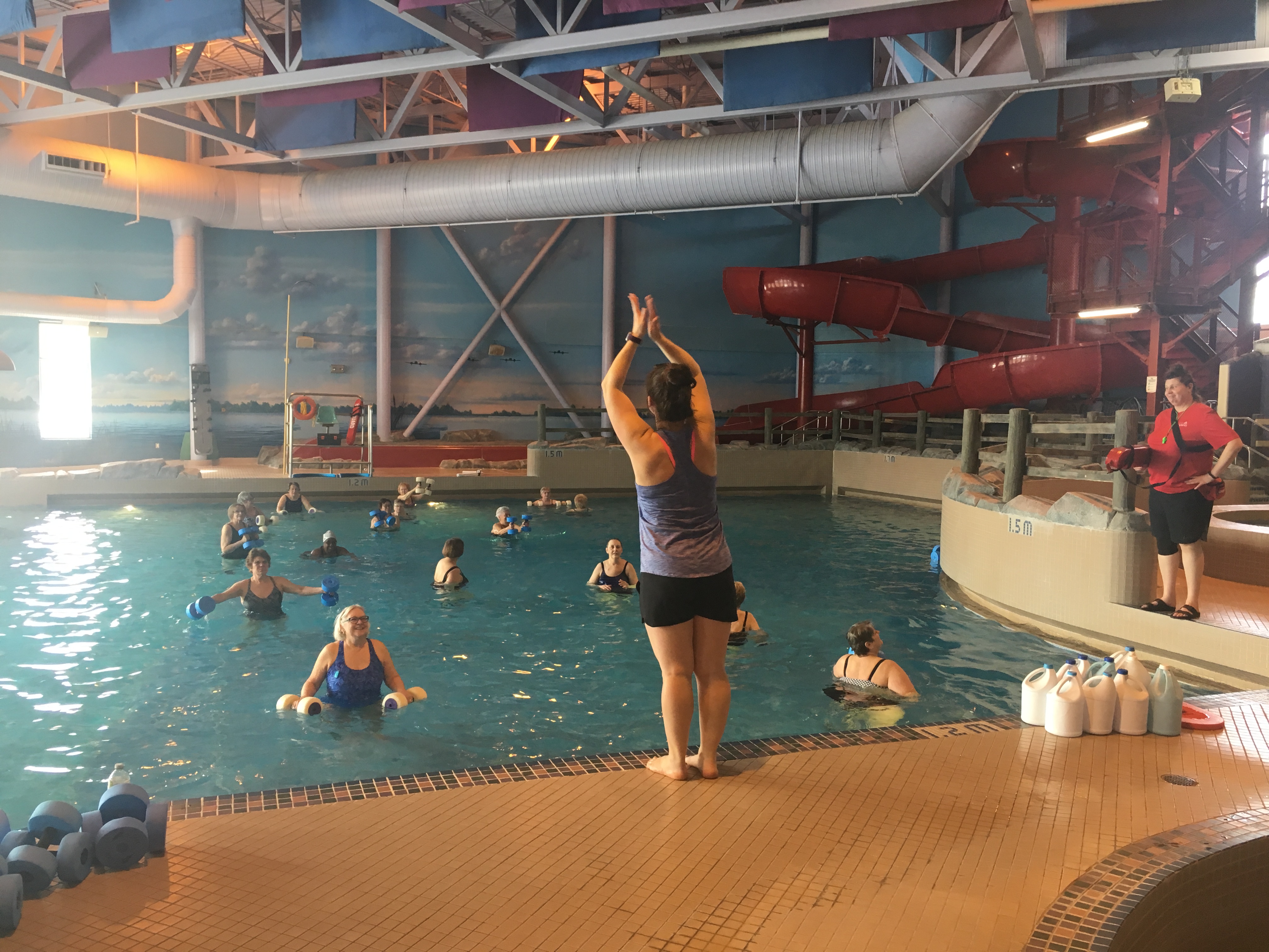 Aquacize is led by members of our lifeguard team. They are not certified fitness instructors, so please listen to your body and stop if something hurts. Always speak with your health care professional before starting a new fitness or physical activity journey.